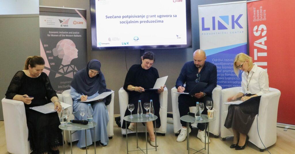 ✓ У оквиру догађаја уприличено је и свечано потписивање грант уговора са социјалним предузећима у оквиру пројекта EWI – Економска инклузија и правда за жене Западног Балкана, који имплементира ЦАРЕ Интернатионал Балканс у сарадњи са партнерима, међу којима је и Пољопривредни кластер Стара Херцеговина, чија је чланица Аграрни фонд Града Требиња.